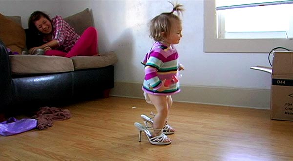 Beyond the damage inflicted on poor, doughy Gary in this scene, we must also account for the damage inflicted on little Leah. Where was she as her mother repeatedly beat her father? Was she playing, unsupervised, by an open window again? A more likely scenario is that she was sitting by the feet of one of MTV’s cameramen, watching this primal scene unfold. What lessons about love, family and basic human decency are being conveyed to an impressionable little girl at such a moment? We giggle when we see little Leah imitate her mother by tottering around in her high heeled shoes. But it would be far less amusing if Leah walked up to her father, punched him in jaw and called him a “fat fuck.”
